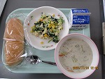 さつまいものシチューは、甘味のあるさつまいもが、いいアクセントになっていました。冷え込みが厳し句なる季節にぴったりの温かいシチューでした。チキンとほうれん草のサラダは、キャベツとコーンも加えて、チキンの塩加減とコーンの甘さが合わさって、食が進みました。いずれも、パンと一緒に食べるとおいしさが増します。