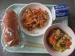 ちゃんぽんは、長崎の学校ならではの給食メニューです。野菜などの具材もたっぷり入って栄養満点です。寒さを感じるこの時期からは、特にうれしいメニューですね。カシューナッツのオイスター炒めは、鶏肉やブロッコリーとの食感の違いを楽しみながら味わいました。