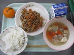 「のっぺい汁 と 浦上そぼろ、みかん」