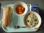 ほうれん草のクリームスパゲッティは、玉ねぎ、にんじん、しめじ、ベーコン、豚肉を加えてクリーム風に仕上げています。チーズや生クリームの効果でコクとまろやかさがある仕上がりになっています。フルーツミックスゼリーには、旬の果物のみかんに、りんご・巨峰セリーを加えています。
