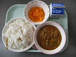 今日、3月9日はミックンの誕生日です。ミカンジュースでソースを手作りし、油で揚げた鶏肉とさつまいもを絡めています。キャベツの肉団子のスープは、野菜類やコーンも入っていて、肉団子との相性ピッタリでした。