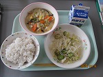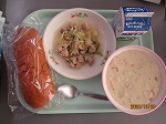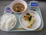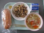 レモンステーキは、佐世保市の名物料理です。薄切りの牛肉を鉄板で焼き焼き上がる直前にレモン醤油のソースをかけて作ります。給食では、豚肉を使用して作っています。隠し味のバター風味で食欲が増します。ポテトスープは、ベーコン、玉ねぎ、にんじんと一緒に煮込んだあっさりスープです。