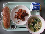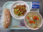 今日は24日?30日の給食週間にちなんだメニューです。給食の始まりと言われている、お寺でお腹がすいた子どもたち向けに出された食事をイメージしたものです。ただ当時は、まだ量や食材が少なかったそうです。今の時代の給食は、メニューの種類や食材が豊富です。日頃の給食に改めて感謝の気持ちをもちながらいただきます。