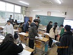 よりよりは、中国から伝わったお菓子で、お土産品として有名です。固いですが、味は子どもに人気の甘味があります。白菜のみそ汁は、冬が旬の白菜がたくさん入っています。きんぴらには、茎わかめに加えて、豚肉、れんこん、にんじんを加えて、甘辛く炒めています。干し大根ご飯は、しっかり味がついた炊き込みご飯で、子どもたちにも大人気でした。