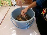 1日目はまず、森の中で指定された木の葉や枝などを探すフィールドビンゴなどを行い、五感を使って、自然に親しみました。午後からは、沢登りに挑戦し、冷たい水や滑りやすい岩に苦戦しながらも自然の中を進みました。険しい場所では友達と手を取り合い、協力しながら乗り越えることができました。