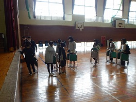 入学式が終わってからは、会場の片付けをてきぱきと行いました。