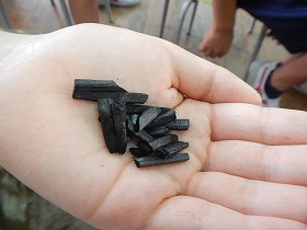 割り箸をアルミホイルで包んで、空気が入らないようにして、熱していきました。