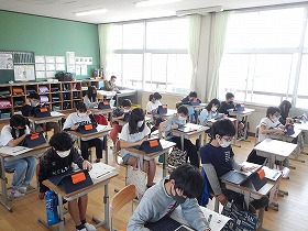 これまで全国学力・学習状況調査の際に、生活習慣や学習環境等に関する質問紙調査も行われていました。今回は、生活習慣や学習環境等に関する質問紙調査のみ、事前にオンラインで回答することとなり、各自のタブレット端末を使って答えました。質問紙で行うより、オンラインで行う方がスムーズに解答できていたようです。
