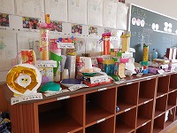 いろいろな形の箱の組み合わせ方やくっつけ方を工夫して、楽しみながら作りました。
