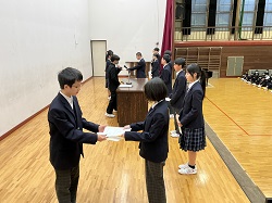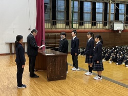 新生徒会役員、各専門委員長に任命状が授与されました。