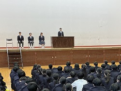 校長式辞の後、各学年の代表が2学期の振り返りを発表しました。