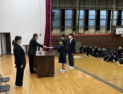 新生徒会役員、各専門委員長に任命状が授与されました。