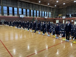 旧現生徒会役員のあいさつの後、生徒会旗の引き継ぎを行いました。